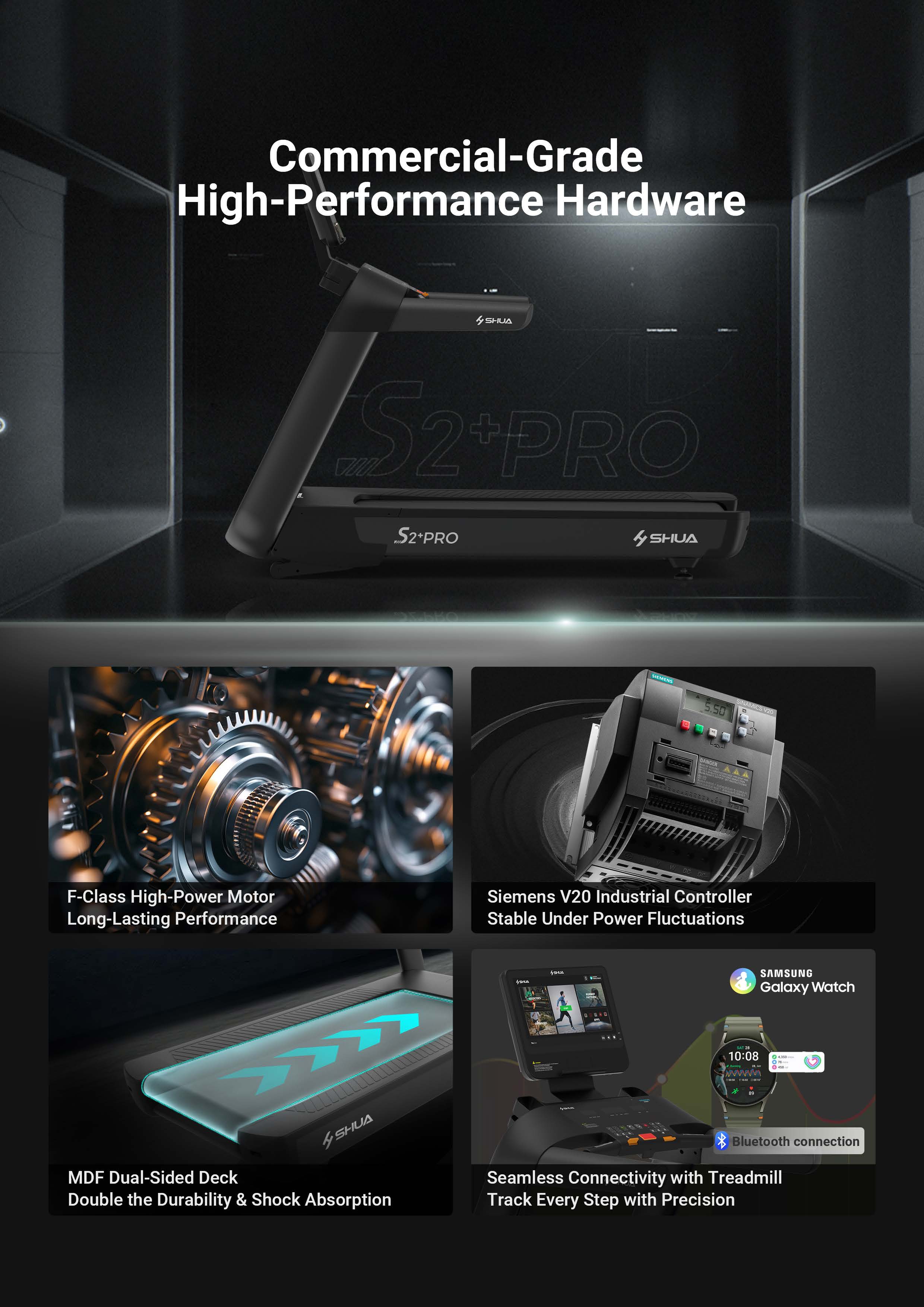 Vi presenterer SHUA S2 + Pro – en helt ny smart tredemølle, designet for både profesjonelle treningssentre og eksklusive hjemmegym. Med avansert AI-drevet teknologi og det intelligente AIC Control System, justeres dempingen på løpeflaten automatisk i løpet av millisekunder. Resultatet er en mer skånsom og personlig løpeopplevelse.